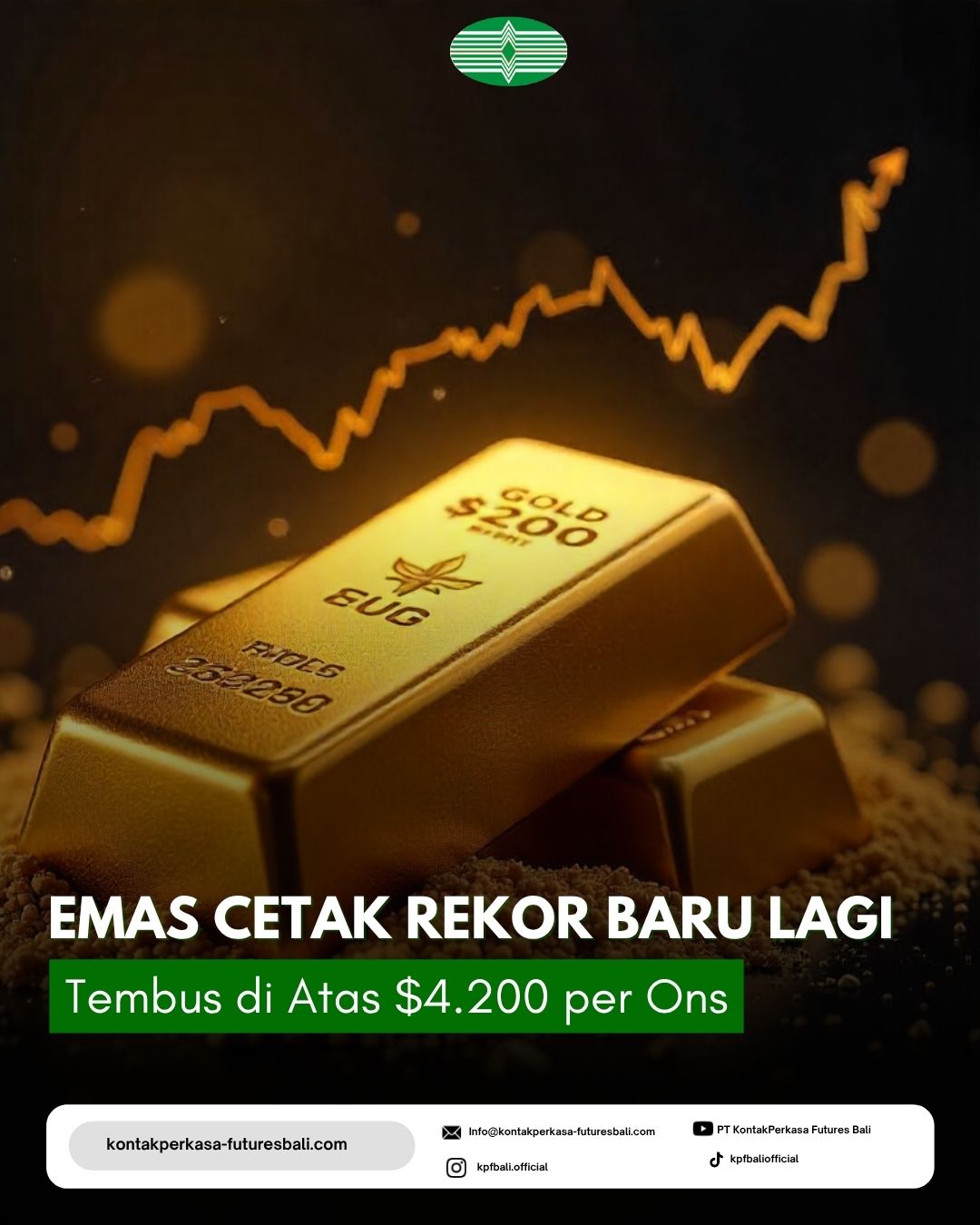 Harga emas kembali mencatat rekor tertinggi baru, menembus level $4.200 per ons untuk pertama kalinya pada Rabu (15/10), memperpanjang reli impresif yang didorong oleh spekulasi pemangkasan suku bunga dan ketegangan geopolitik yang meningkatkan minat terhadap aset aman.