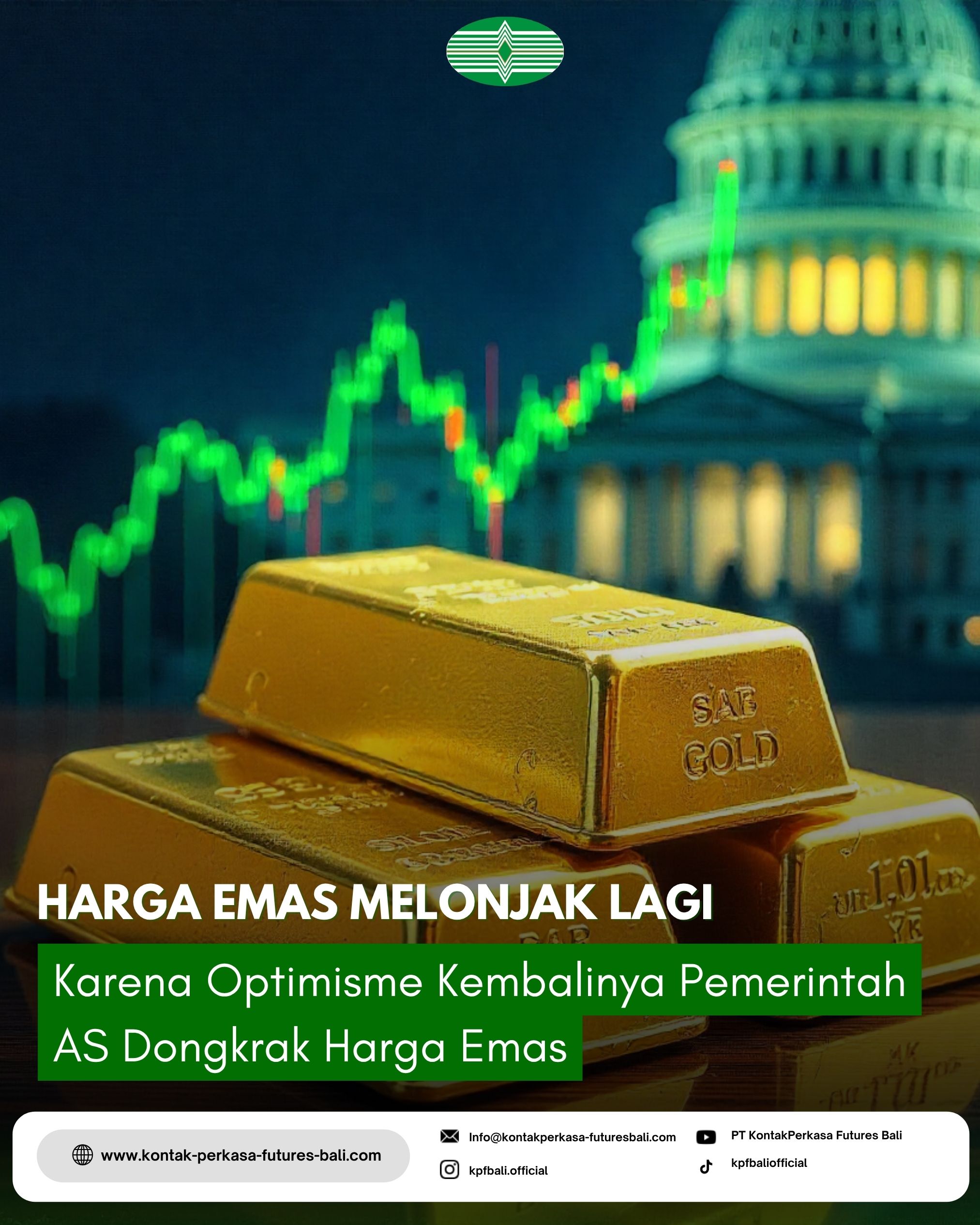 PT KONTAKPERKASA FUTURES BALI 13/11/2025 – Harga emas melonjak 2% pada Rabu (12/11) seiring turunnya imbal hasil Treasury AS menjelang pemungutan suara di DPR untuk membuka kembali pemerintahan Amerika Serikat. Langkah ini diharapkan dapat memulihkan rilis data ekonomi dan memperkuat ekspektasi pemangkasan suku bunga The Federal Reserve pada Desember mendatang.